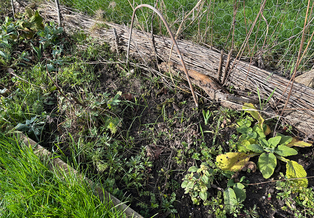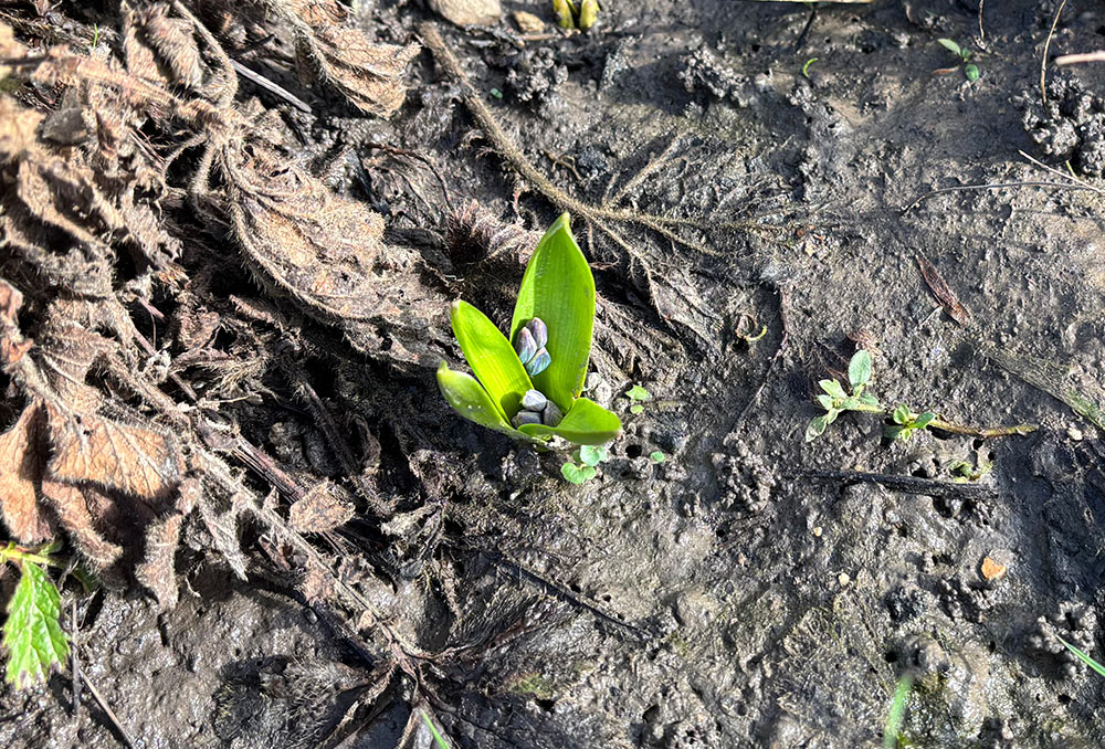 Over in the wetter left border, a few scilla are coming up. They’re quite robust and look a bit like hyacinth at this point.